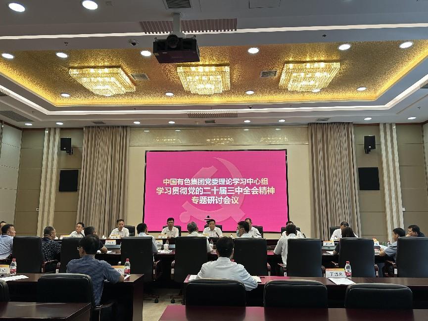 根據(jù)黨中央關(guān)于學習貫徹黨的二十屆三中全會精神的重要部署,以及國務(wù)院國資委黨委有關(guān)工作要求,8月30日,中國有色集團黨委召開理論學習中心組黨的二十屆三中全會精神專題學習研討會議,集中學習黨的二十屆三中全會精神,重溫習近平總書記對集團公司三次重要指示批示精神,就集團公司全面抓好貫徹落實,加快推動高質(zhì)量發(fā)展開展集中研討。中國有色集團黨委書記、董事長主持學習,領(lǐng)學三中全會精神重點內(nèi)容并作研討重點發(fā)言,黨委副書記、總經(jīng)理領(lǐng)學習近平總書記重要指示批示精神并作研討重點發(fā)言,集團公司領(lǐng)導班子成員參加學習研討。
